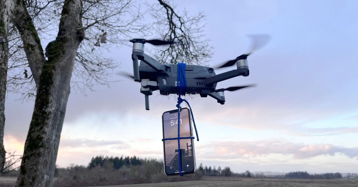 في الأثناء، فكّر الرجل -الذي لم يكشف عن اسمه- باستخدام طائرة مسيرة كانت معه لطلب المساعدة، وذلك عبر ربط الهاتف بها وإرسال رسالة نصية ذكر فيها حاجاته للمساعدة ومكانه بالتحديد، أملا في وصول الطائرة إلى أماكن تغطية الشبكة وعندها تصل الرسالة.