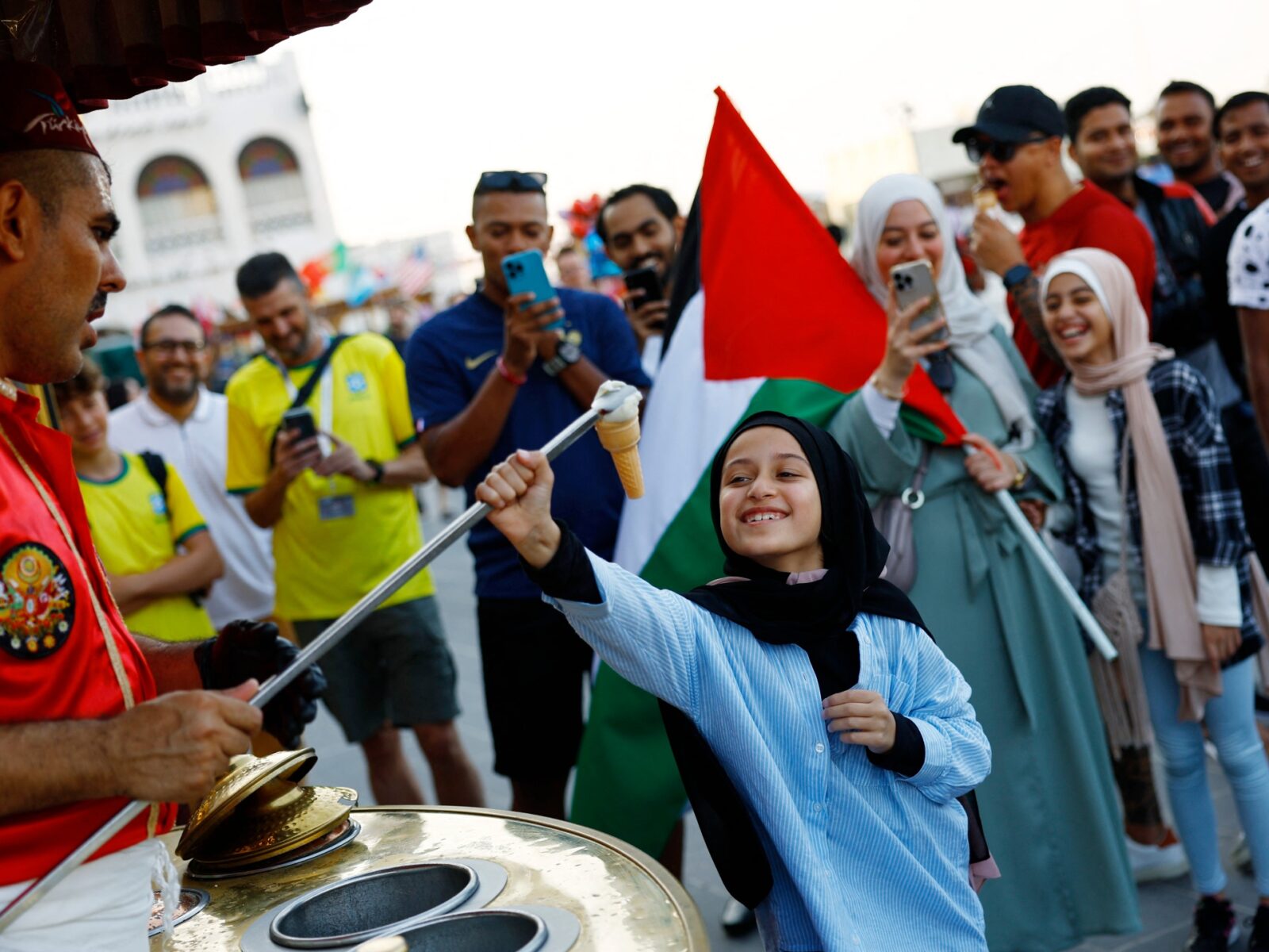 وأوضح مقال نشرته صحيفة “فايننشال تايمز” البريطانية، أن المشجعين احتشدوا في شوارع السوق وأزقته، يرتدون أزياءهم التقليدية، ويحملون الشعارات الرياضية التي تمثل منتخبات بلدانهم أو المنتخبات التي يشجعونها، ما خلق فرصة لتلاقي أمم مختلفة الثقافات للاستمتاع بكرة القدم.
