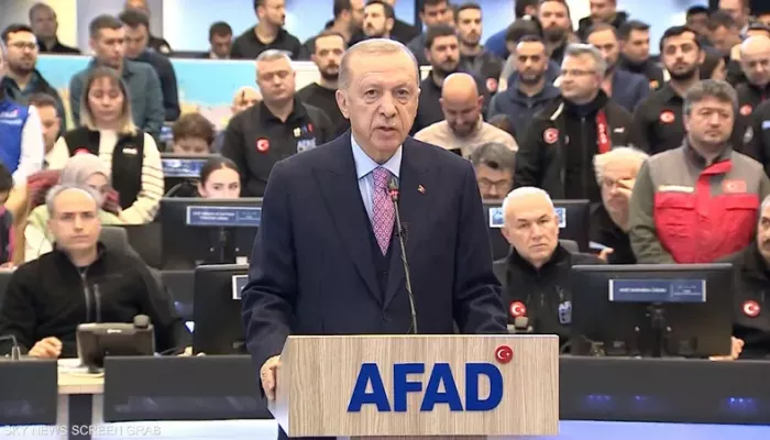 خلال مؤتمر صحفي، تحدث الرئيس التركي رجب طيب أردوغان عن الزلزال الذي ضرب مدينة كهرمان مرعش، جنوبي البلاد: