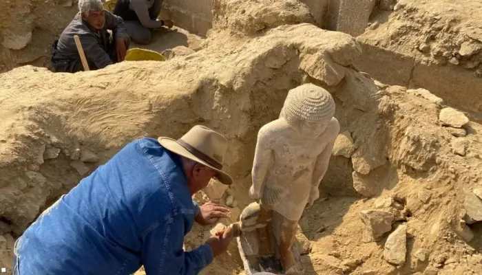 وتم العثور على تمثال لشخص يظهر واقفا وبجواره زوجته تمسك بقدمه وإلى الجانب الآخر ابنته وهي تحمل أوزة.