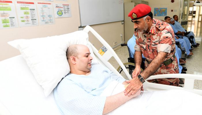 وقد قام العميد الركن شهاب بن محمد الزيدي رئيس الخدمات الاجتماعية العسكرية برئاسة أركان قوات السُّلطان المسلحة صباح اليوم بزيارة عددٍ من الأشخاص ذوي الإعاقة بمستشفى معسكر المرتفعة للاطمئنان عليهم وتكريمهم، وقدم لهم تهاني قوات السُّلطان المسلحة والهدايا الرمزية بهذه المناسبة المجيدة.