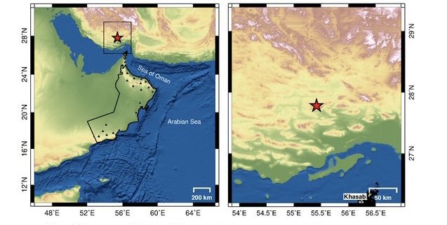 ويبعد مركز هذا الزلزال حوالي 194 كيلومتر عن مدينة خصب.
