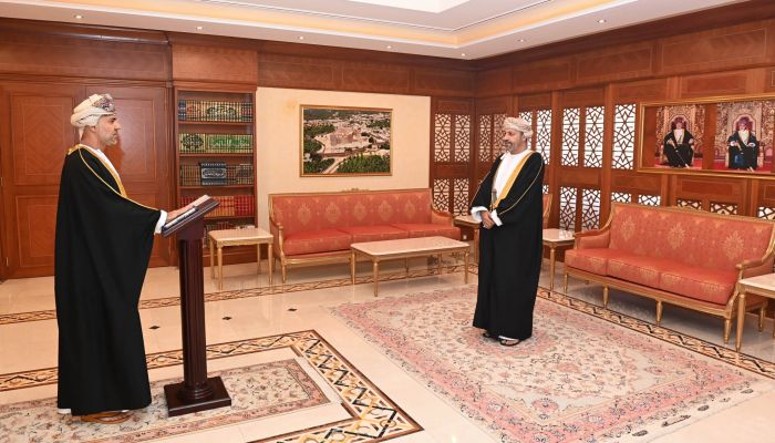 أصحاب السعادة المحافظون رؤساء المجالس البلدية في المحافظات يؤدون قسم اليمين أمام معالي السيد حمود بن فيصل البوسعيدي وزير الداخلية.