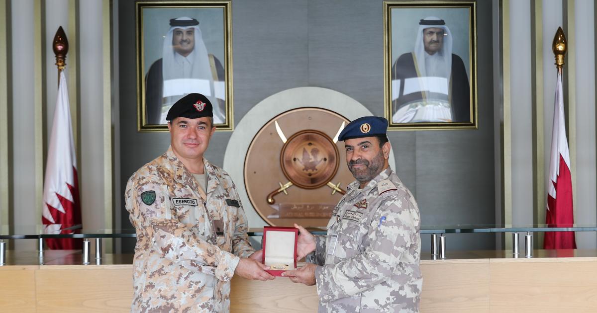 التقى سعادة اللواء الركن (طيار) محمد عبداللطيف المناعي مستشار سعادة نائب رئيس مجلس الوزراء وزير الدولة لشؤون الدفاع للشؤون العسكرية والأمنية ورئيس لجنة وزارة الدفاع التنفيذية لحدث كأس العالم FIFA قطر 2022، اليوم الجمعة، العميد الركن جوسيبي بوسا قائد القوة الإيطالية المشاركة في دعم قيادة القوة المشتركة لتأمين بطولة كأس العالم FIFA قطر 2022.