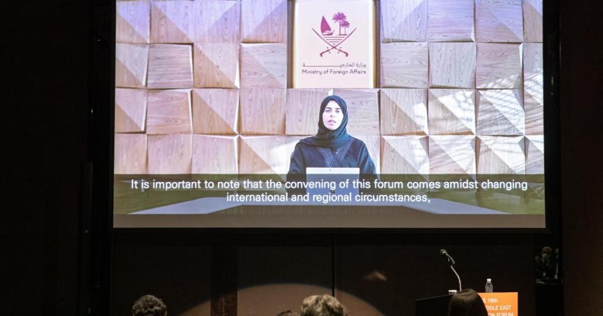 مثل دولة قطر في المنتدى، سعادة السيدة لولوة بنت راشد الخاطر مساعد وزير الخارجية، حيث ألقت سعادتها كلمة افتتاحية في المنتدى، الذي استضافته الجمعية الكورية – العربية، ومعهد جيجو للسلام، ومجلس الشرق الأوسط للشؤون العالمية بدولة قطر، ركزت فيها على واقع العلاقات بين منطقة الشرق الأوسط وكوريا، وسبل وآفاق تعزيز التعاون المتعدد الأطراف والثنائي بين دولة قطر وجمهورية كوريا.